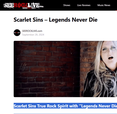 Review of Legends Never Die, latest single by Scarlet Sins, by See Rock Live Magazine