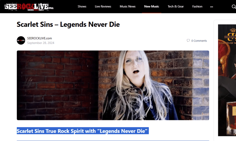 Scarlet Sins True Rock Spirit with “Legends Never Die”. In an era where the pulse of Rock seems to be in question, Scarlet Sins defibrillates the genre with their new anthem and the supporting video for, “Legends Never Die.” This Canadian powerhouse reminds us why rock will always have a place in our hearts and on our playlists.